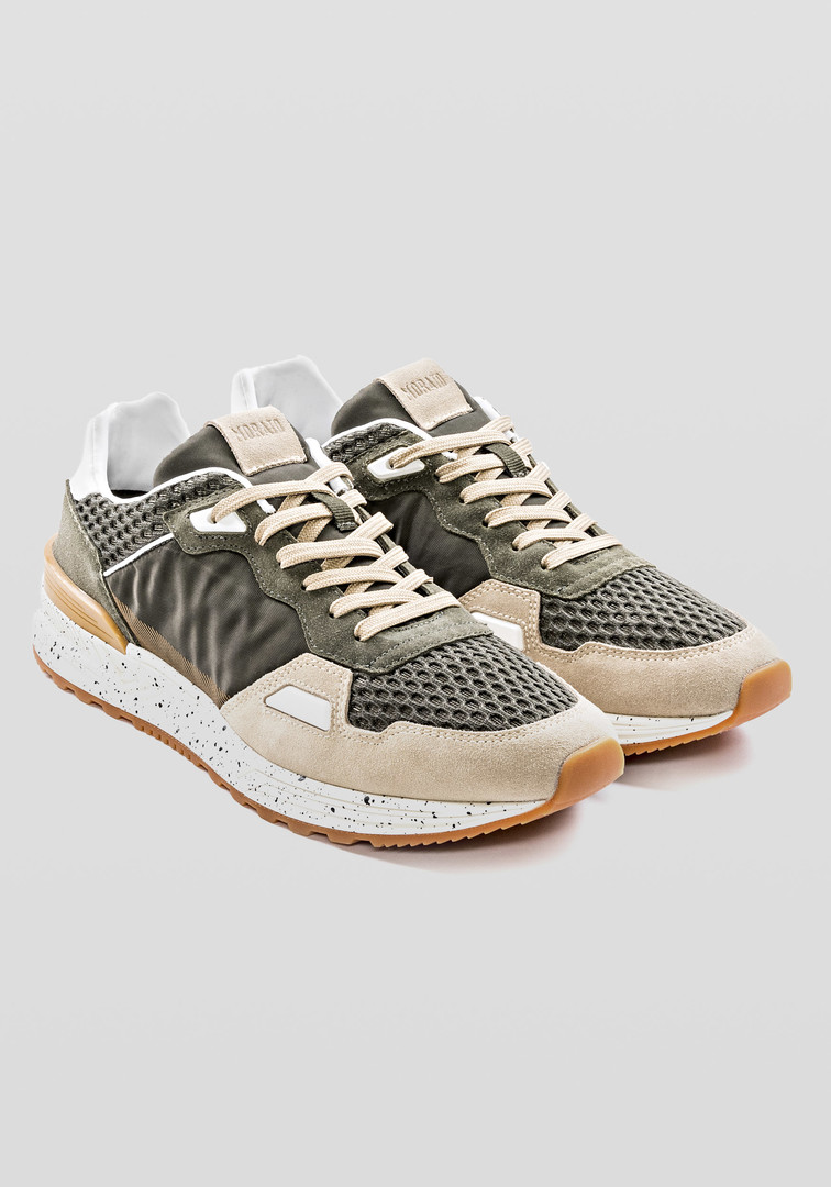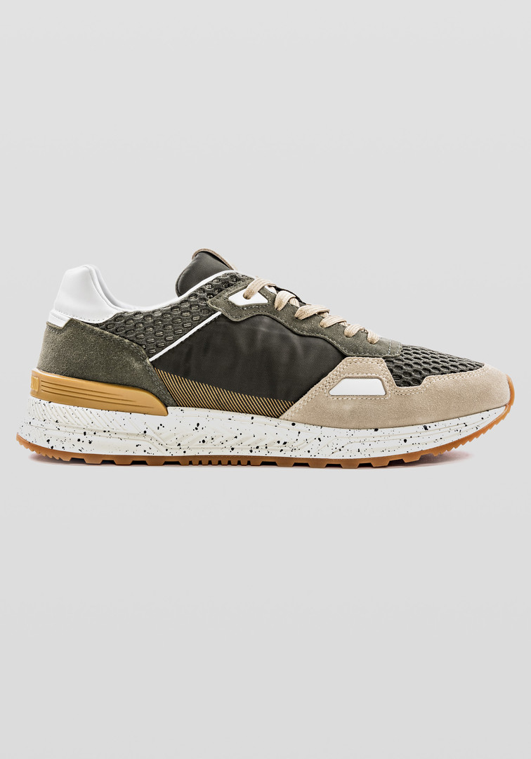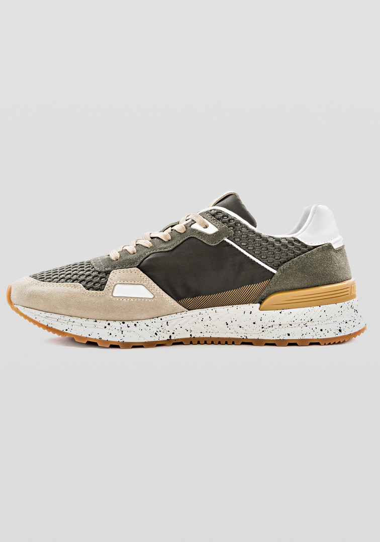 Sapatilha de corrida em tecido técnico com detalhes de rede tonal e inserções